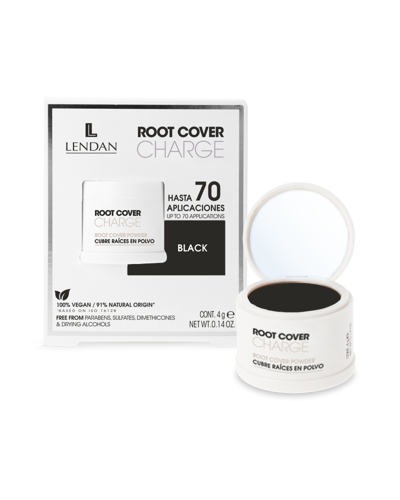 Root Cover es un polvo mineral para una cobertura fácil, instantánea y natural del crecimiento de las canas. Absorbe la grasa o sebo de la raíz para mantener un aspecto limpio. Resiste a la humedad y no destiñe durante el uso. Contiene aceite de Monoï de Tahití, ácido hialurónico y infusión de plantas ayurvédicas medicinales